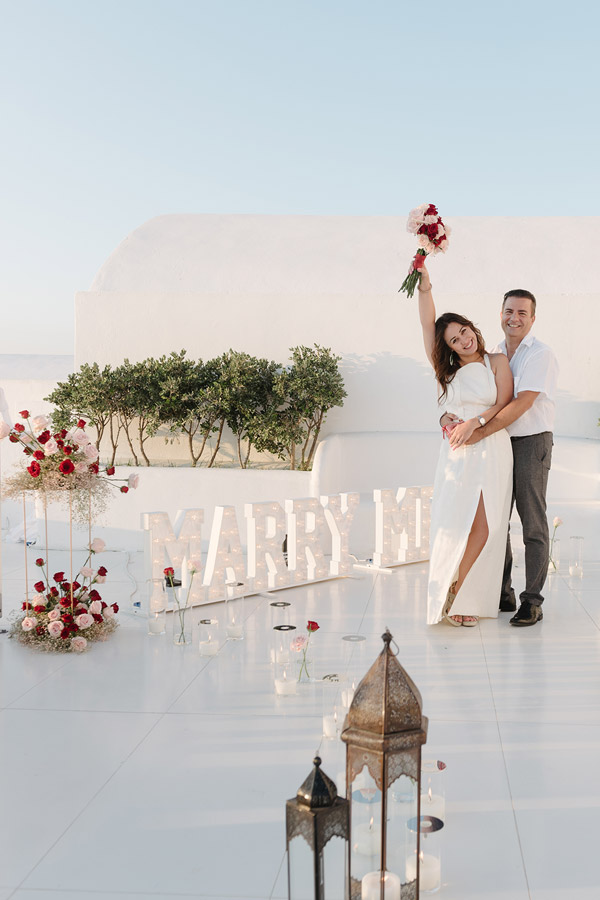 We’ll consider every single detail, so things flow naturally, feel authentic and are blissfully stress-free.You’re already ahead of the game since you smartly decided to propose to your future spouse in Santorini! Let us know about your story and leave the rest to our caring hands.